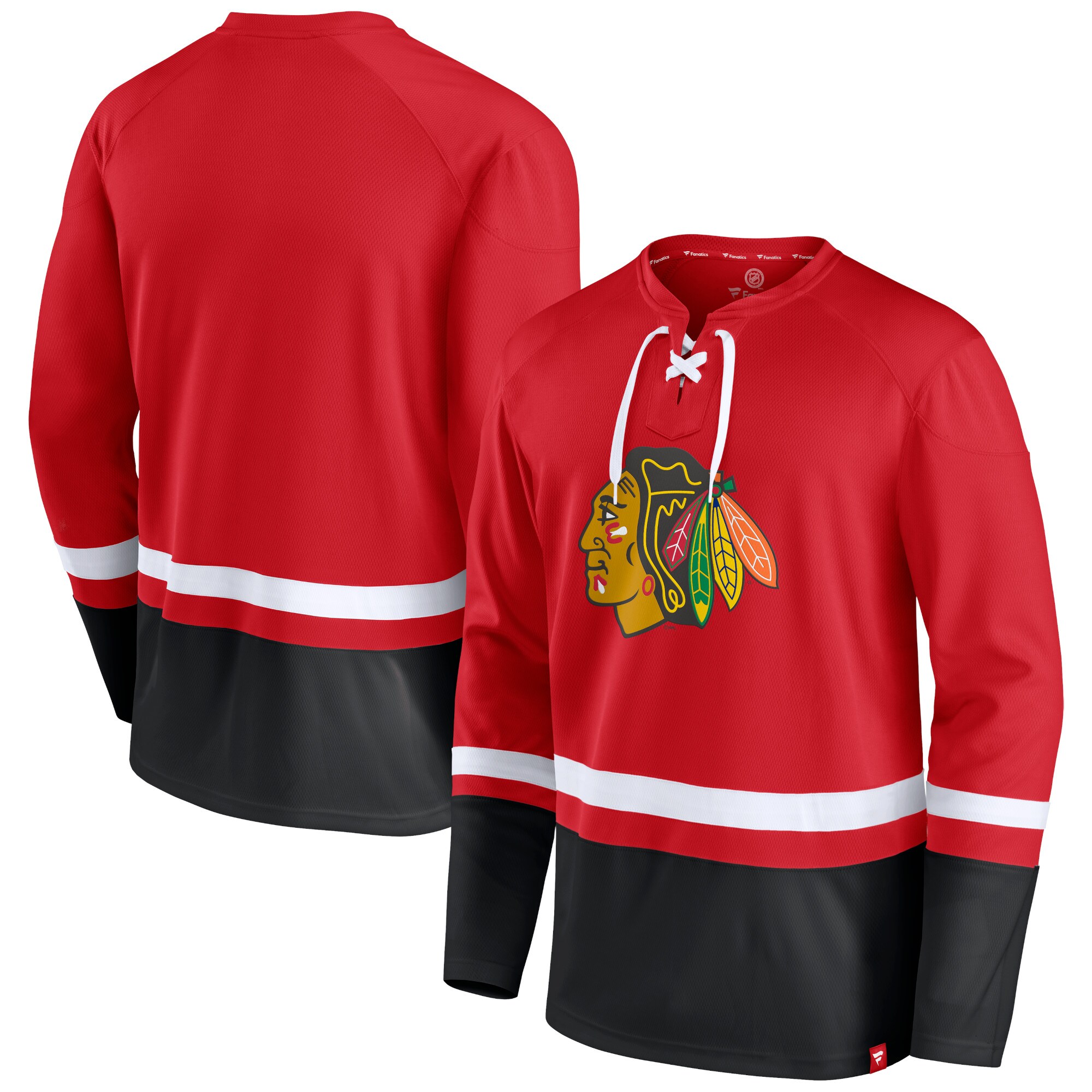 Chicago Blackhawks Fanatics Branded Super Mission Slapshot Lace-Up Pullover Sweatshirt - Red/Black