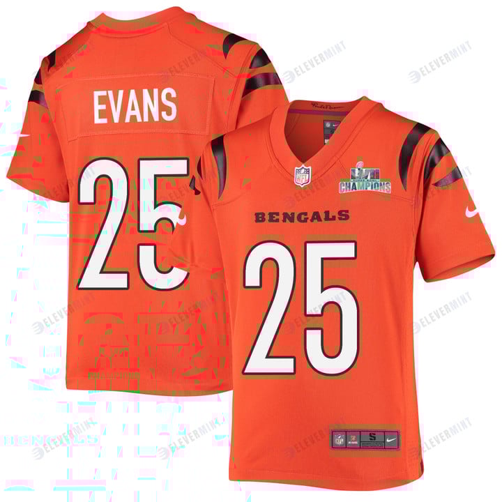 Chris Evans 25 Cincinnati Bengals Super Bowl LVII Champions Youth Alternate Game Jersey - Orange
