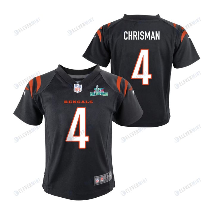 Drue Chrisman 4 Cincinnati Bengals Super Bowl LVII Champions Youth Game Jersey - Black