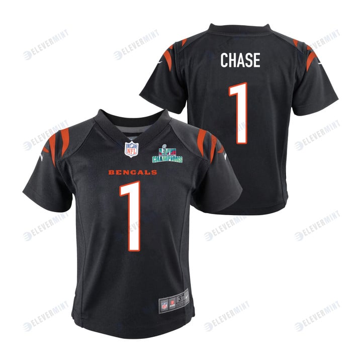Ja'Marr Chase 1 Cincinnati Bengals Super Bowl LVII Champions Youth Game Jersey - Black