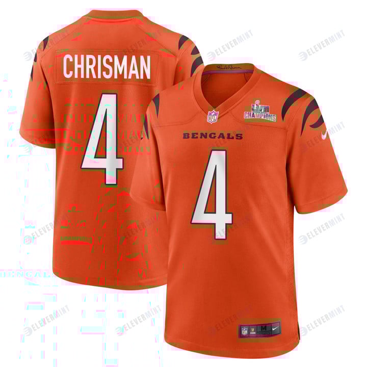 Drue Chrisman 4 Cincinnati Bengals Super Bowl LVII Champions Men Alternate Game Jersey - Orange