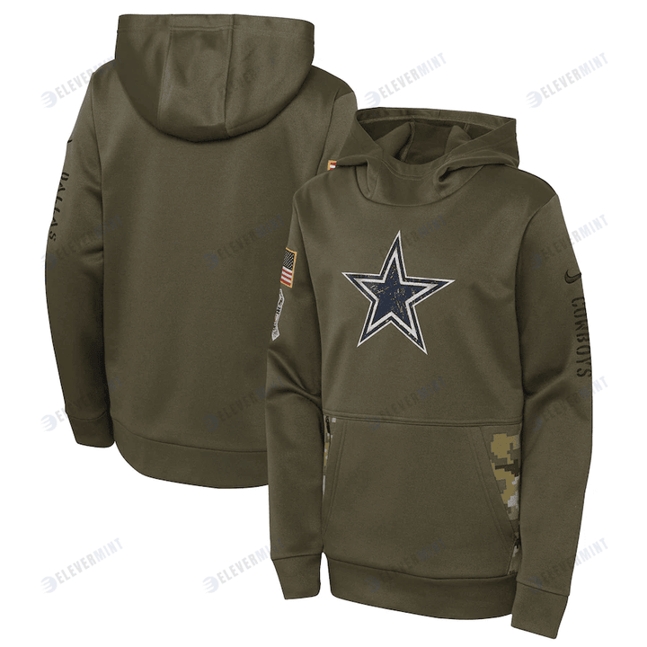 Dallas Cowboys Youth 2022 Salute To Service Performance Pullover Hoodie - Olive