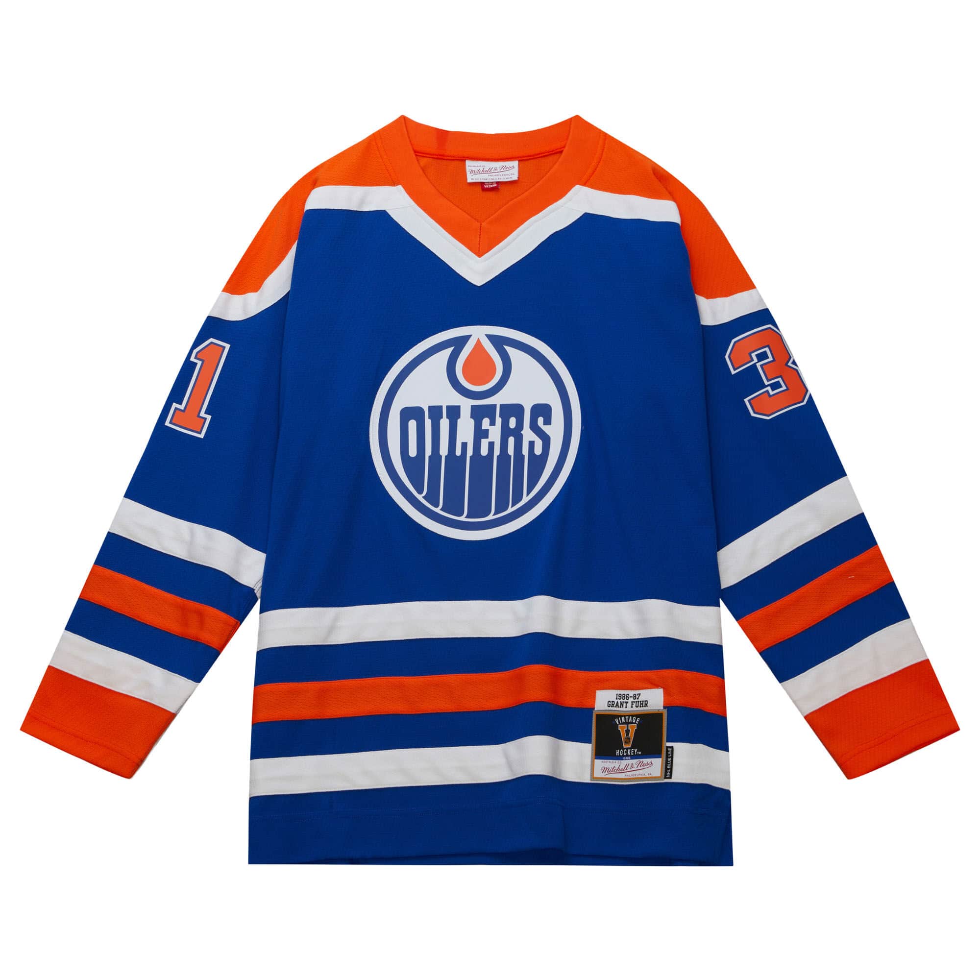Blue Line Grant Fuhr Edmonton Oilers 1986 Jersey