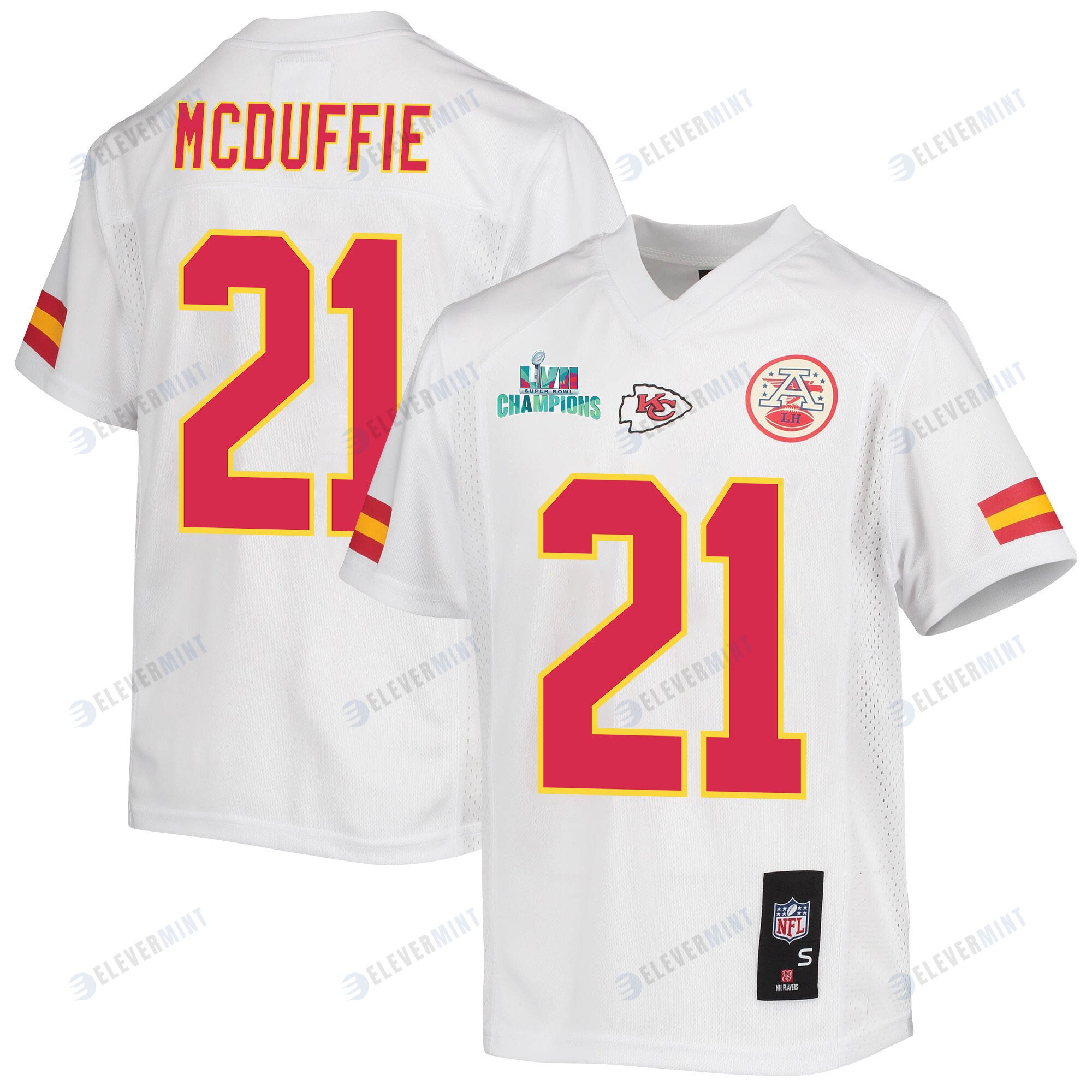 Trent McDuffie 21 Kansas City Chiefs Super Bowl LVII Champions Youth Game Jersey - White