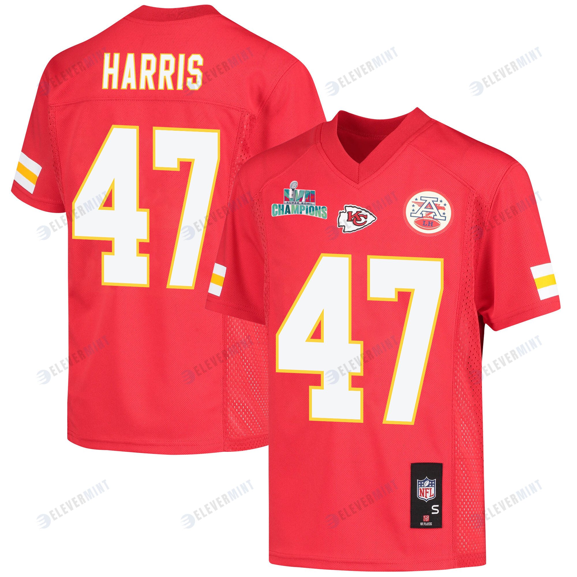 Darius Harris 47 Kansas City Chiefs Super Bowl LVII Champions Youth Game Jersey - Red