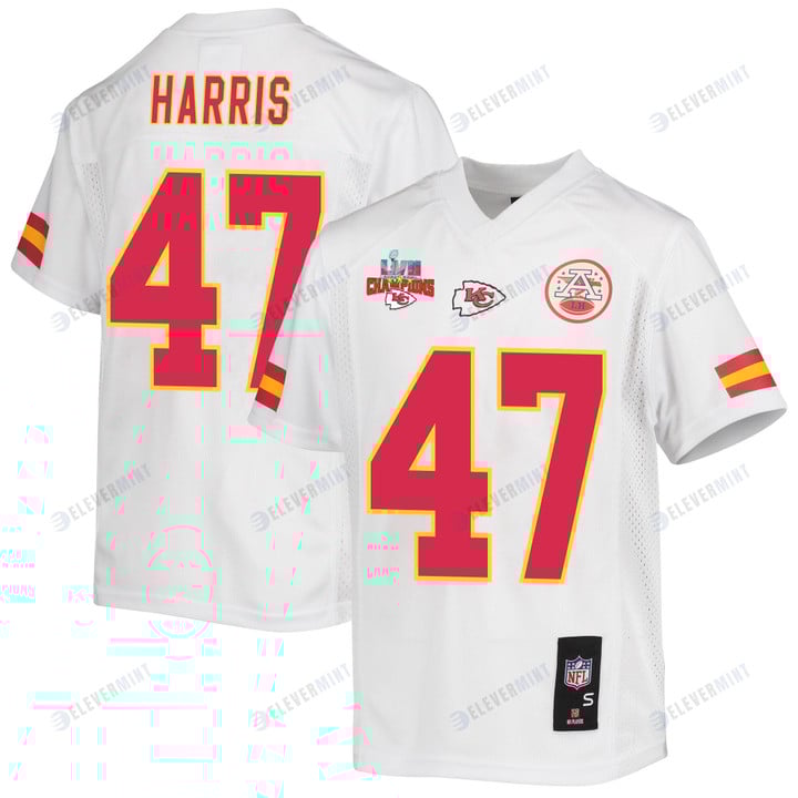 Darius Harris 47 Kansas City Chiefs Super Bowl LVII Champions 3 Stars Youth Game Jersey - White
