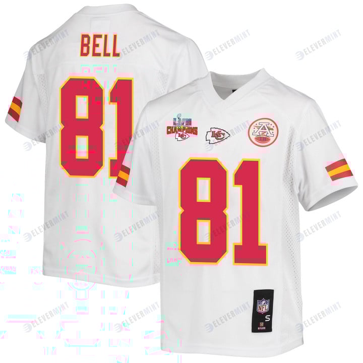 Blake Bell 81 Kansas City Chiefs Super Bowl LVII Champions 3 Stars Youth Game Jersey - White