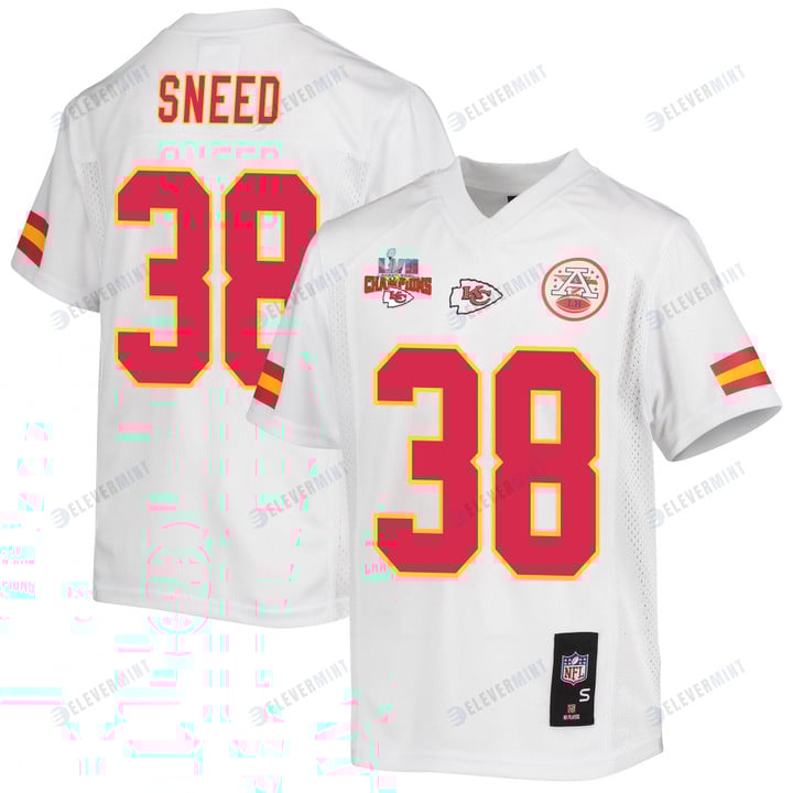 L'Jarius Sneed 38 Kansas City Chiefs Super Bowl LVII Champions 3 Stars Youth Game Jersey - White