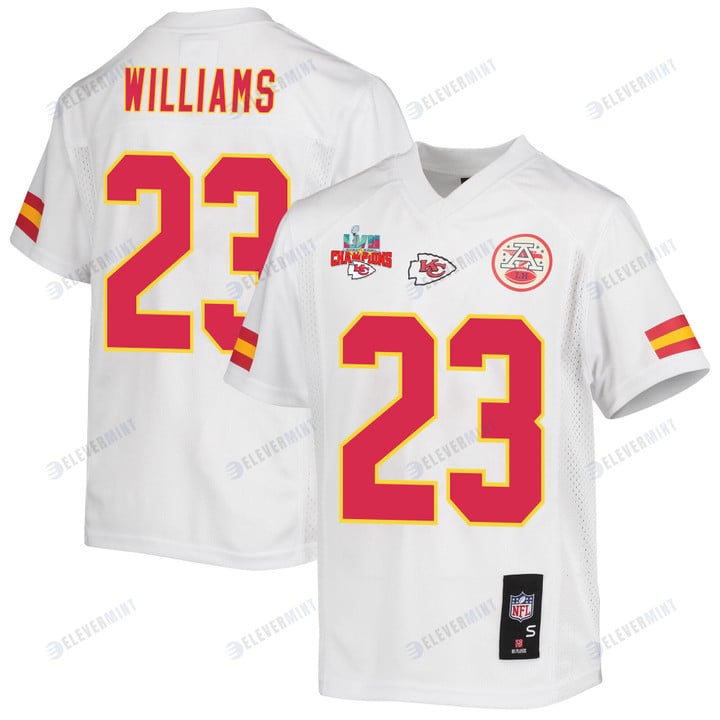 Joshua Williams 23 Kansas City Chiefs Super Bowl LVII Champions 3 Stars Youth Game Jersey - White