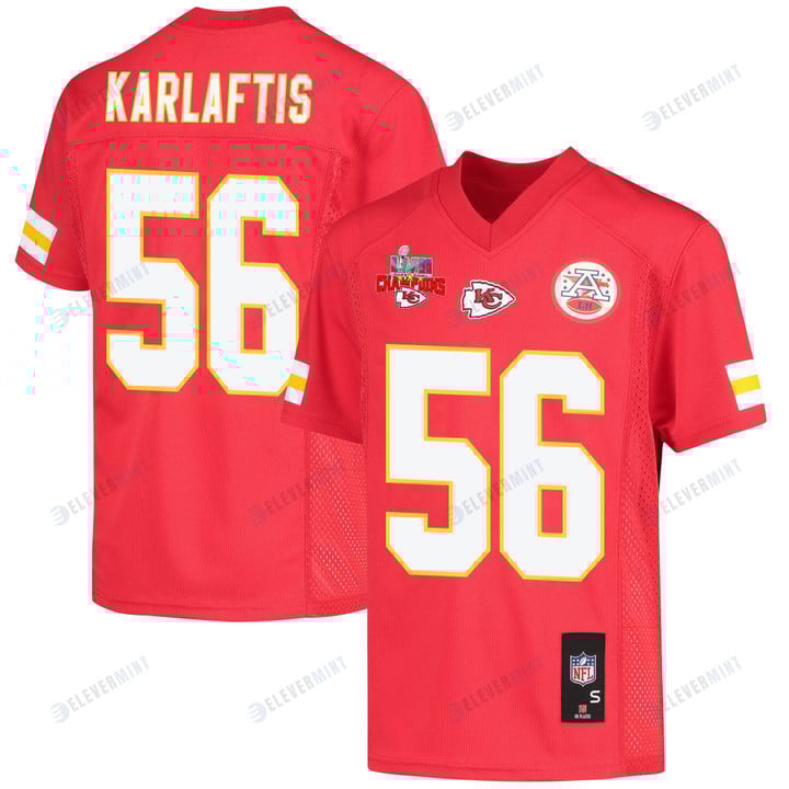 George Karlaftis 56 Kansas City Chiefs Super Bowl LVII Champions 3 Stars Youth Game Jersey - Red