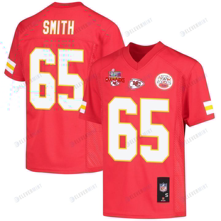 Trey Smith 65 Kansas City Chiefs Super Bowl LVII Champions 3 Stars Youth Game Jersey - Red