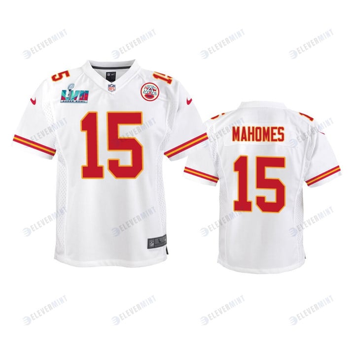 Patrick Mahomes 15 Kansas City Chiefs Super Bowl LVII Game Jersey - Youth White