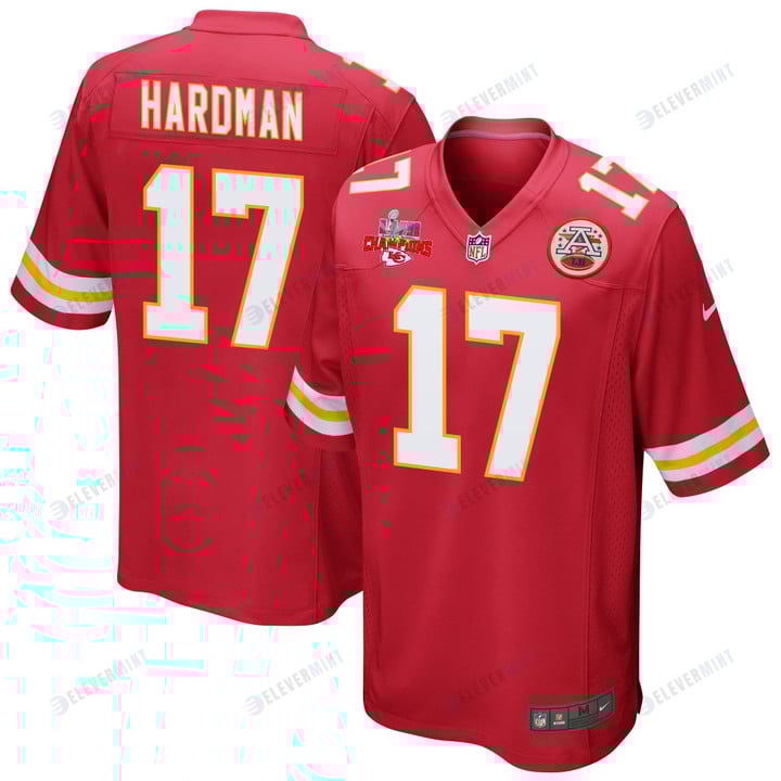 Mecole Hardman 17 Kansas City Chiefs Super Bowl LVII Champions 3 Stars Men Game Jersey - Red