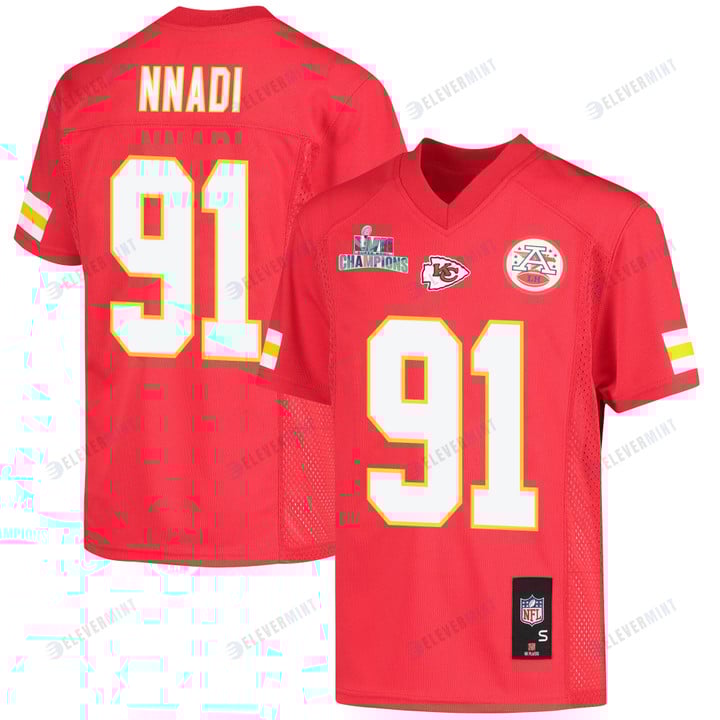 Derrick Nnadi 91 Kansas City Chiefs Super Bowl LVII Champions Youth Game Jersey - Red