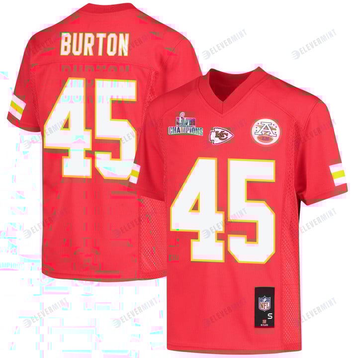 Michael Burton 45 Kansas City Chiefs Super Bowl LVII Champions Youth Game Jersey - Red