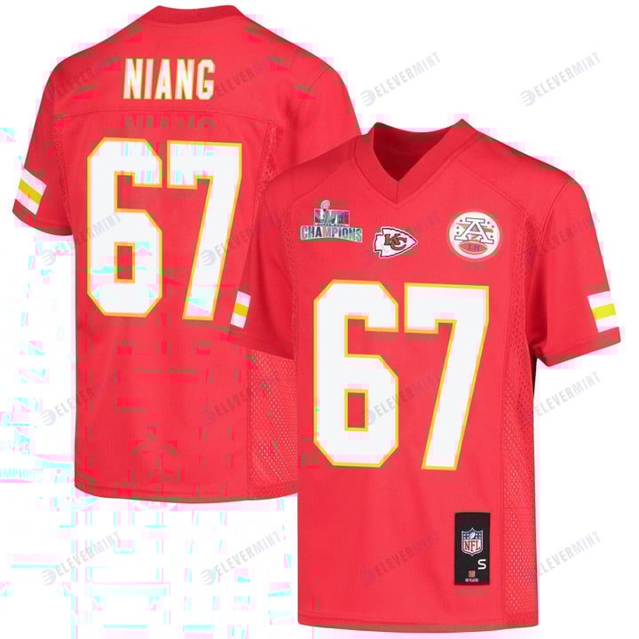 Lucas Niang 67 Kansas City Chiefs Super Bowl LVII Champions Youth Game Jersey - Red