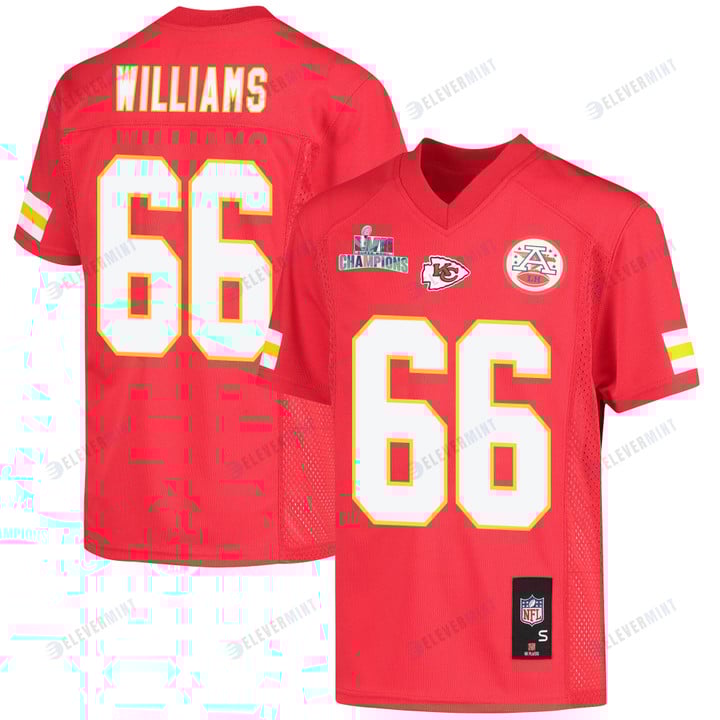 Brandon Williams 66 Kansas City Chiefs Super Bowl LVII Champions Youth Game Jersey - Red