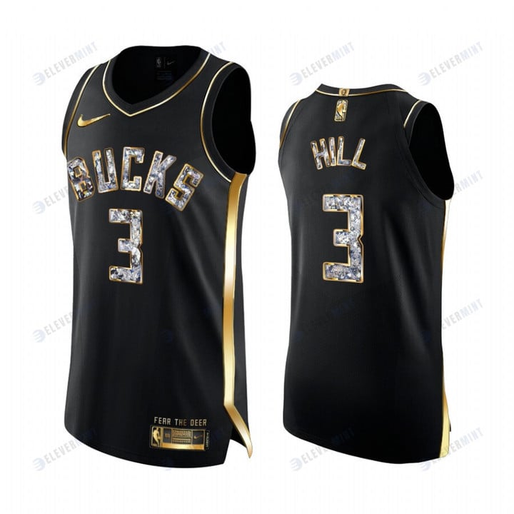 Milwaukee Bucks George Hill 3 Black Golden Diamond Edition Jersey 2022 NBA Playoffs