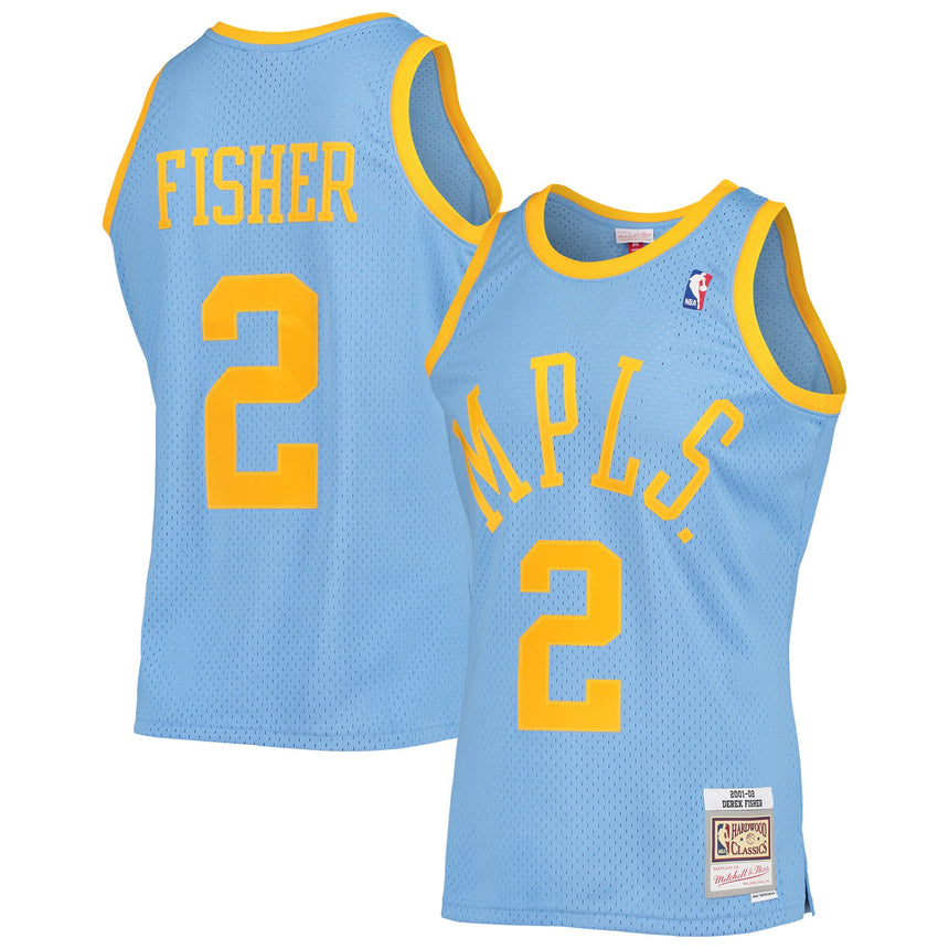 Men's Los Angeles Lakers Derek Fisher Mitchell & Ness Powder Blue 2001-02 Hardwood Classics Swingman Jersey