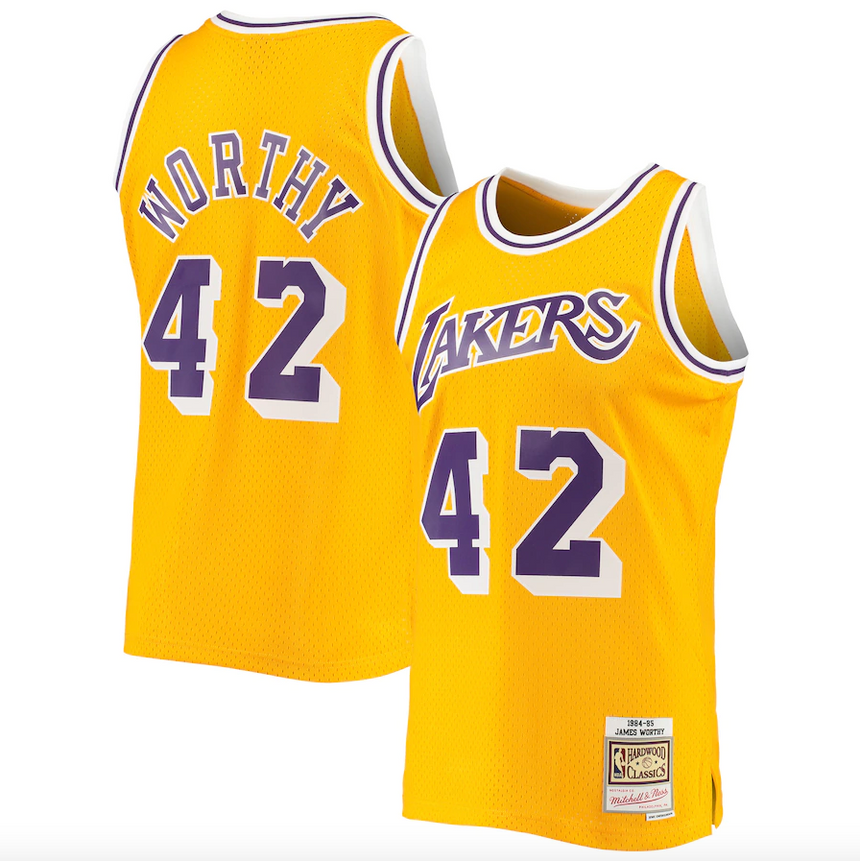 Men's Los Angeles Lakers James Worthy Mitchell & Ness Gold 1984-85 Hardwood Classics Swingman Jersey