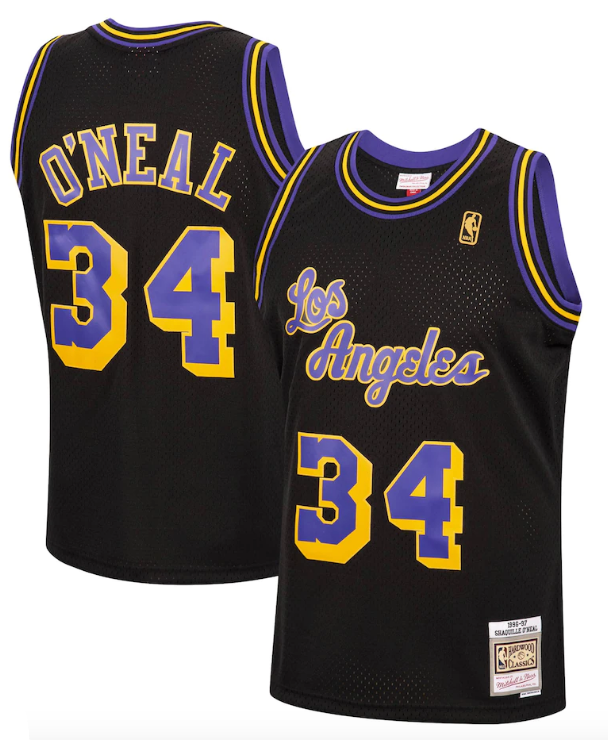 Men's Los Angeles Lakers Shaquille O'Neal Mitchell & Ness Black 1996-97 Hardwood Classics Reload Swingman Jersey-Black