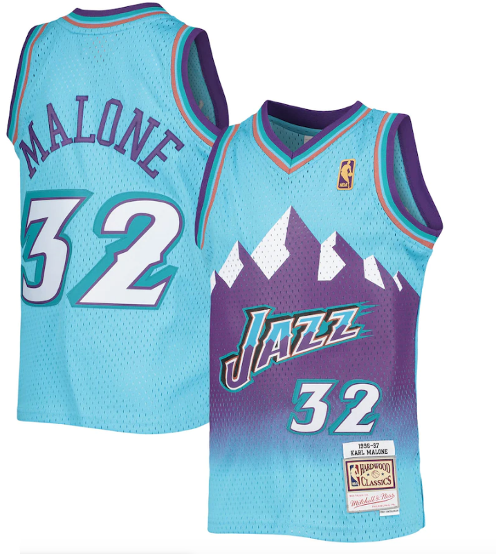 Men's Karl Malone Utah Jazz Mitchell & Ness 1996-97 Hardwood Classics Reload Jersey �Light Blue
