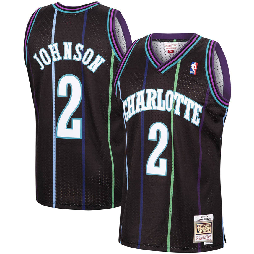 Men's Charlotte Hornets Larry Johnson Mitchell & Ness 1992-93 Hardwood Classics Reload 2.0 Swingman Jersey-Black