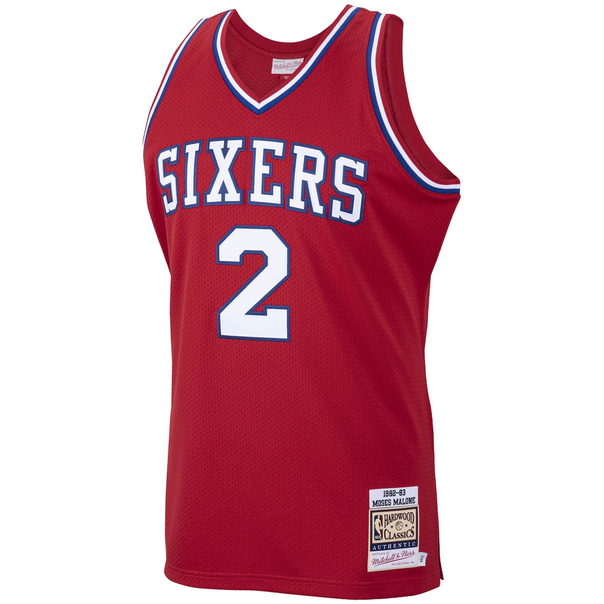 Men's Moses Malone Mitchell & Ness 76ers Hardwood Classics Authentic Jersey - Red