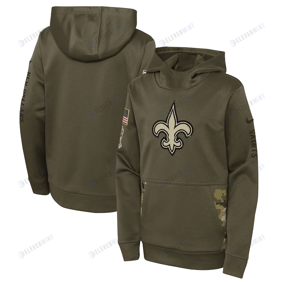 New Orleans Saints Youth 2022 Salute To Service Performance Pullover Hoodie - Olive