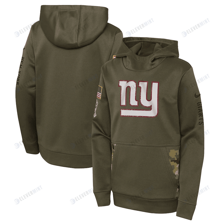 New York Giants Youth 2022 Salute To Service Performance Pullover Hoodie - Olive