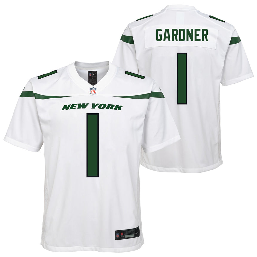 Youth Sauce Gardner New York Jets White Game Replica Jersey