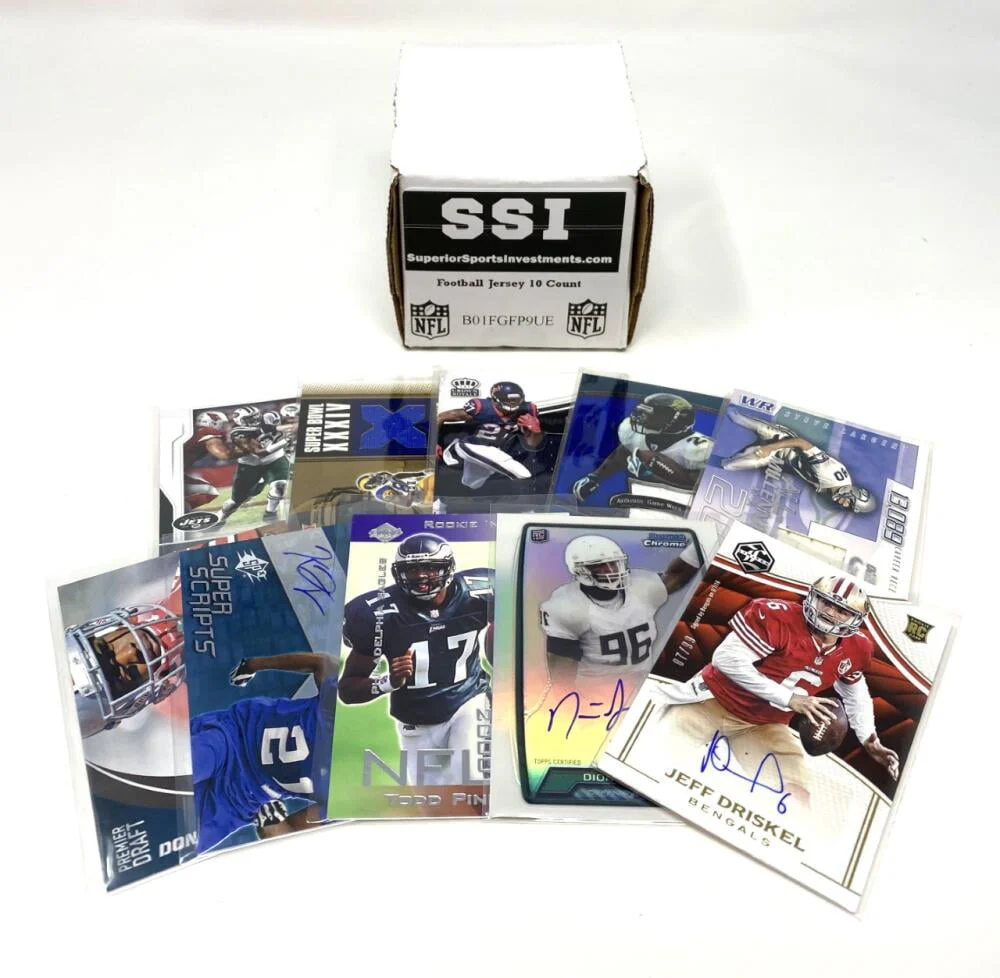 10 Football NFL Jersey Autograph Card Collectible Box Lot