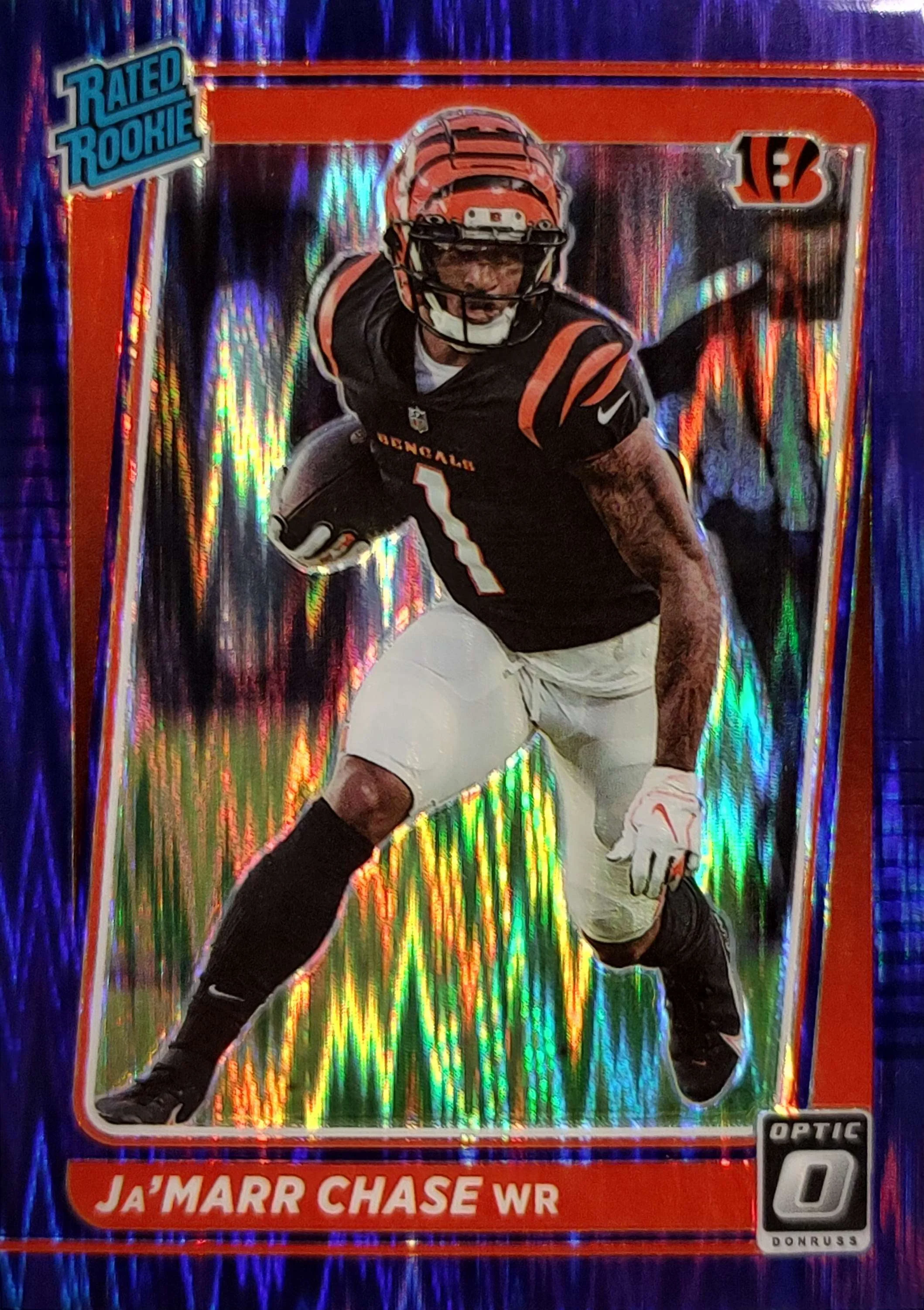 NFL 2021 Panini Donruss Optic Ja'Marr Chase Purple Shock Trading Card #207 (Rated Rookie)