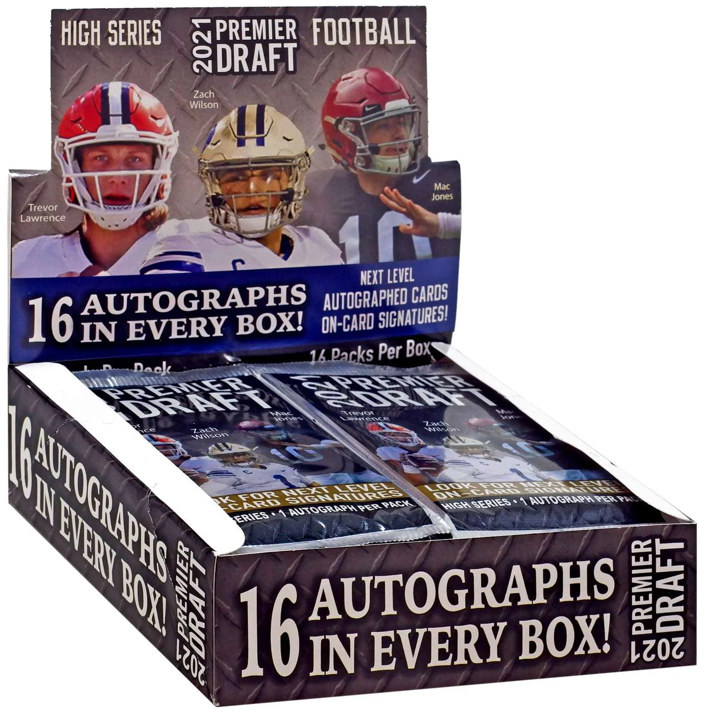 NFL 2021 Hit Premier Draft High Series Football Trading Card HOBBY Box (16 Packs, 16 Autographs)