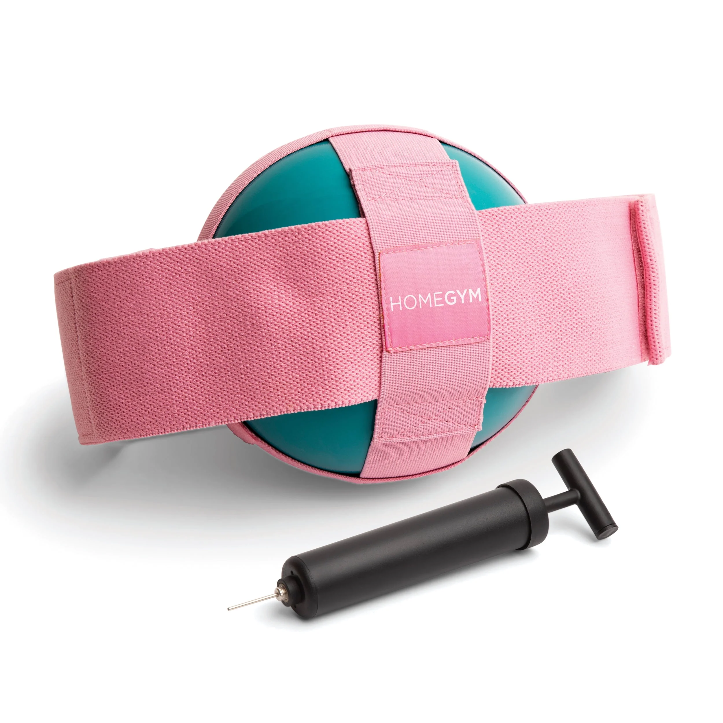 HomeGym Exercise Thigh Toner Adjustable Inflatable 3lb Rubber Workout Ball with Pump Carry Bag, Teal Pink