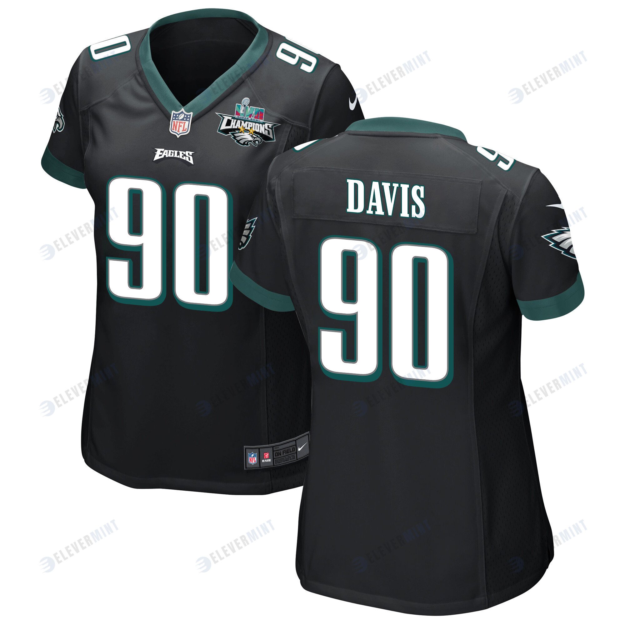 Jordan Davis 90 Philadelphia Eagles Super Bowl LVII Champions 2 Stars Women Game Jersey - Black