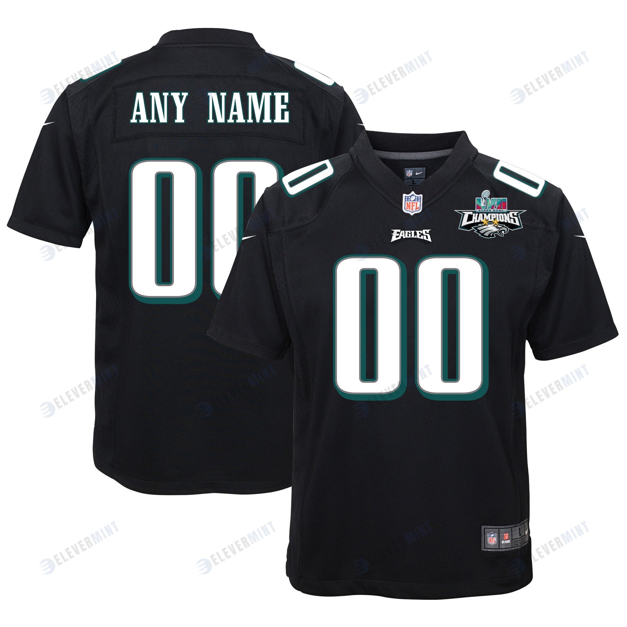 Custom Philadelphia Eagles Super Bowl LVII Champions 2 Stars Youth Game Jersey - Black