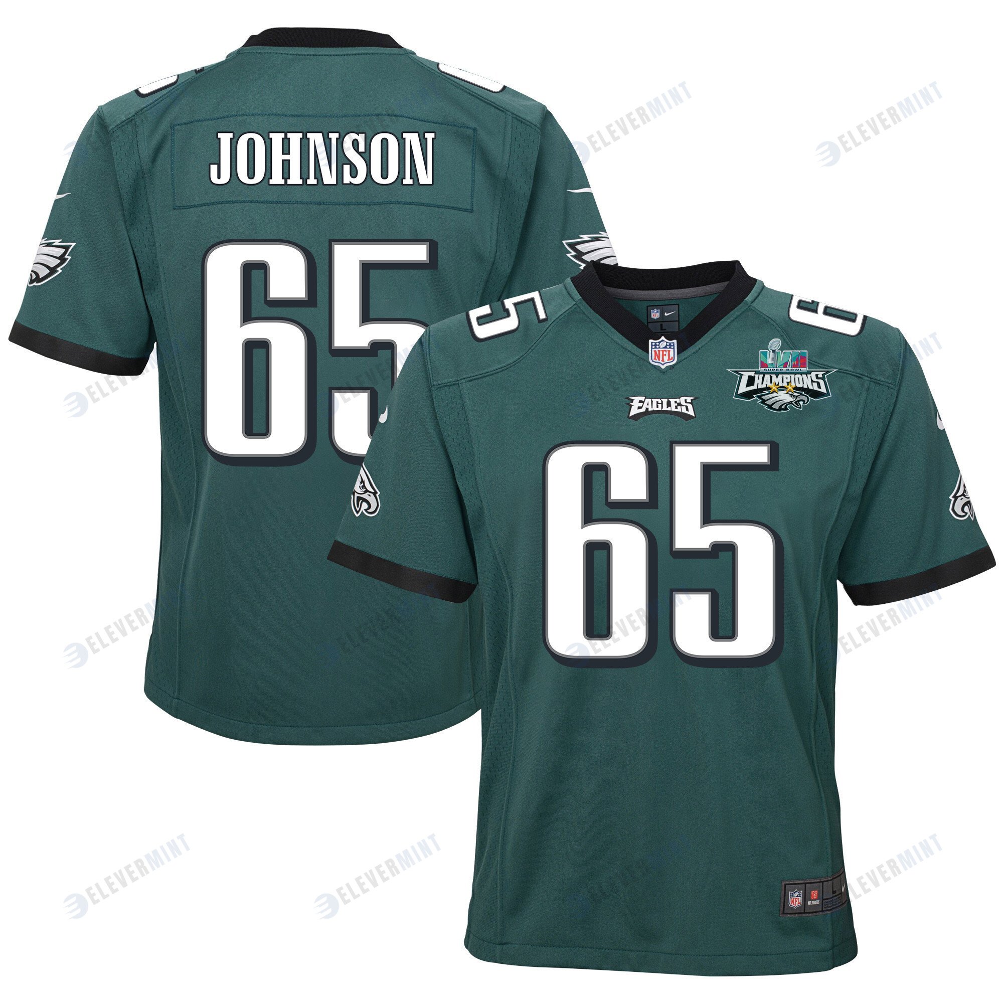Lane Johnson 65 Philadelphia Eagles Super Bowl LVII Champions 2 Stars 2 Stars Youth Game Jersey - Black