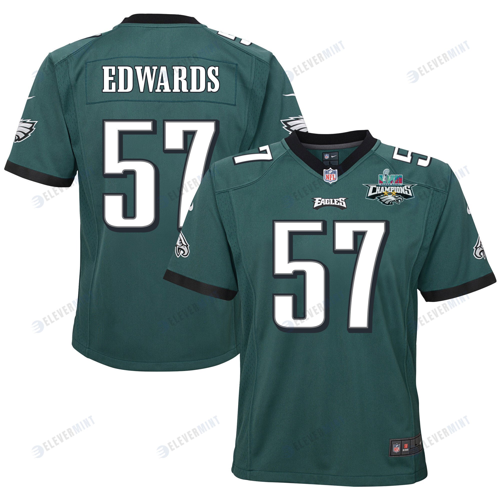 T.J. Edwards 57 Philadelphia Eagles Super Bowl LVII Champions 2 Stars 2 Stars Youth Game Jersey - Black