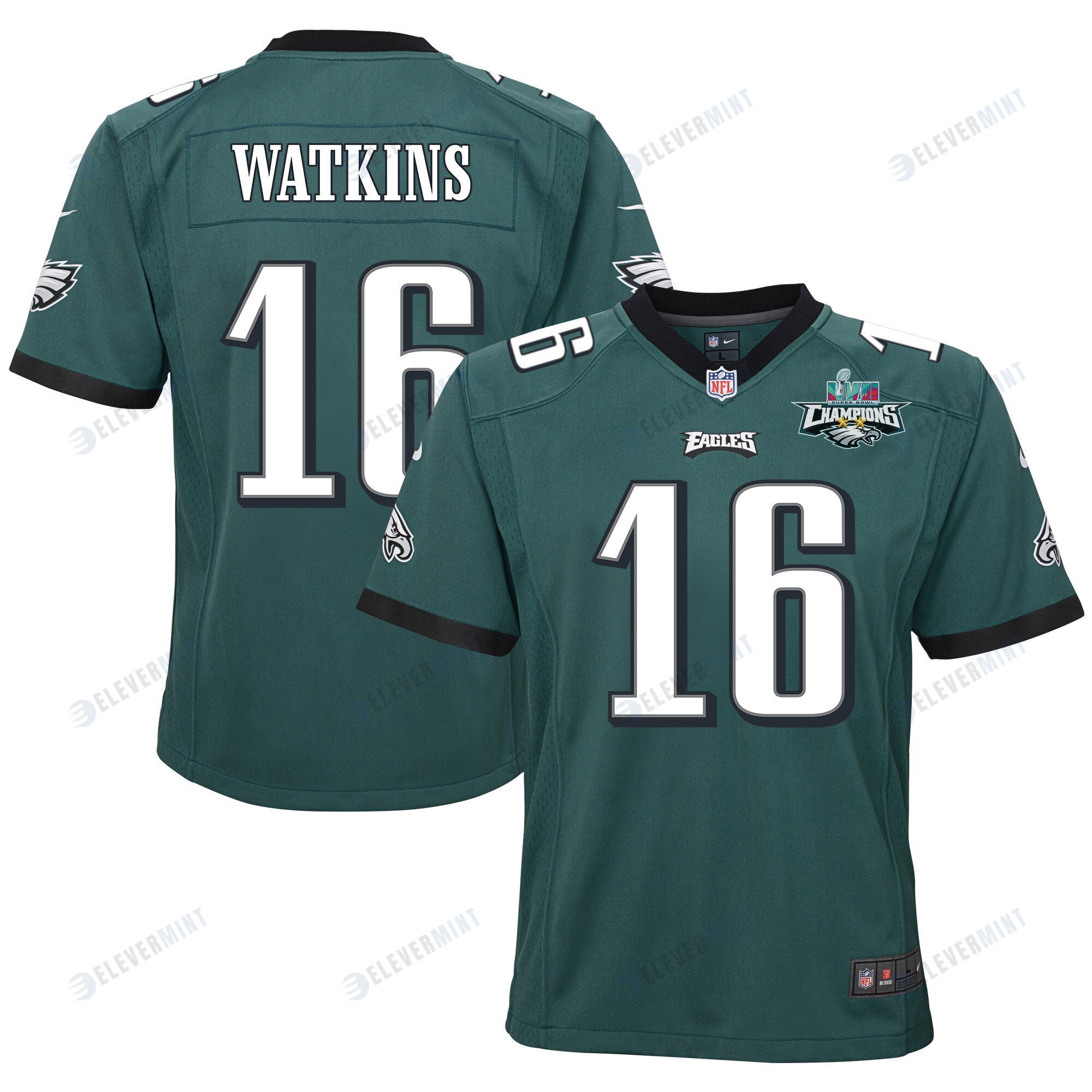 Quez Watkins 16 Philadelphia Eagles Super Bowl LVII Champions 2 Stars 2 Stars Youth Game Jersey - Black