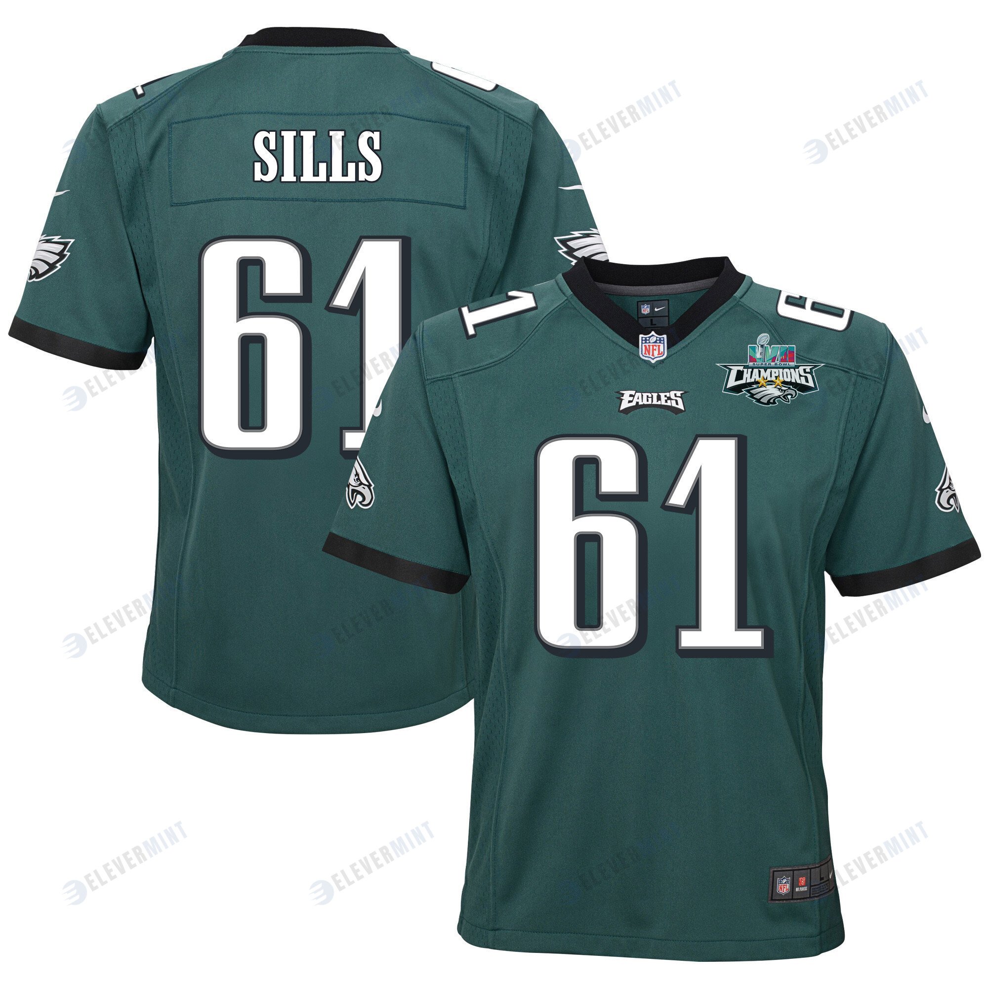 Josh Sills 61 Philadelphia Eagles Super Bowl LVII Champions 2 Stars 2 Stars Youth Game Jersey - Black