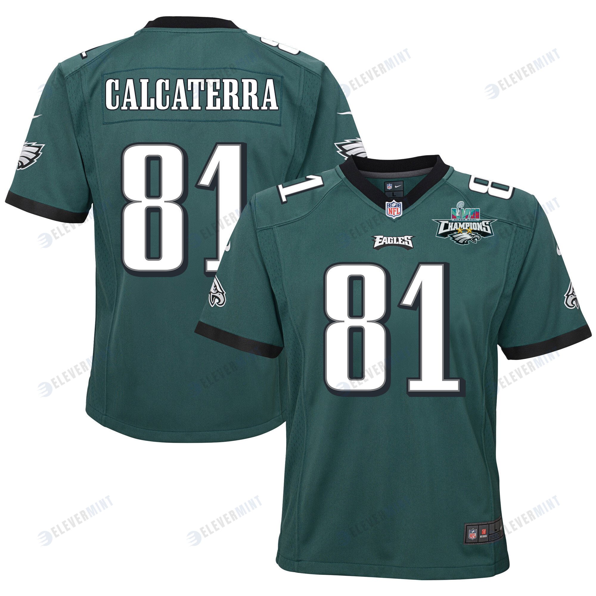 Grant Calcaterra 81 Philadelphia Eagles Super Bowl LVII Champions 2 Stars 2 Stars Youth Game Jersey - Black