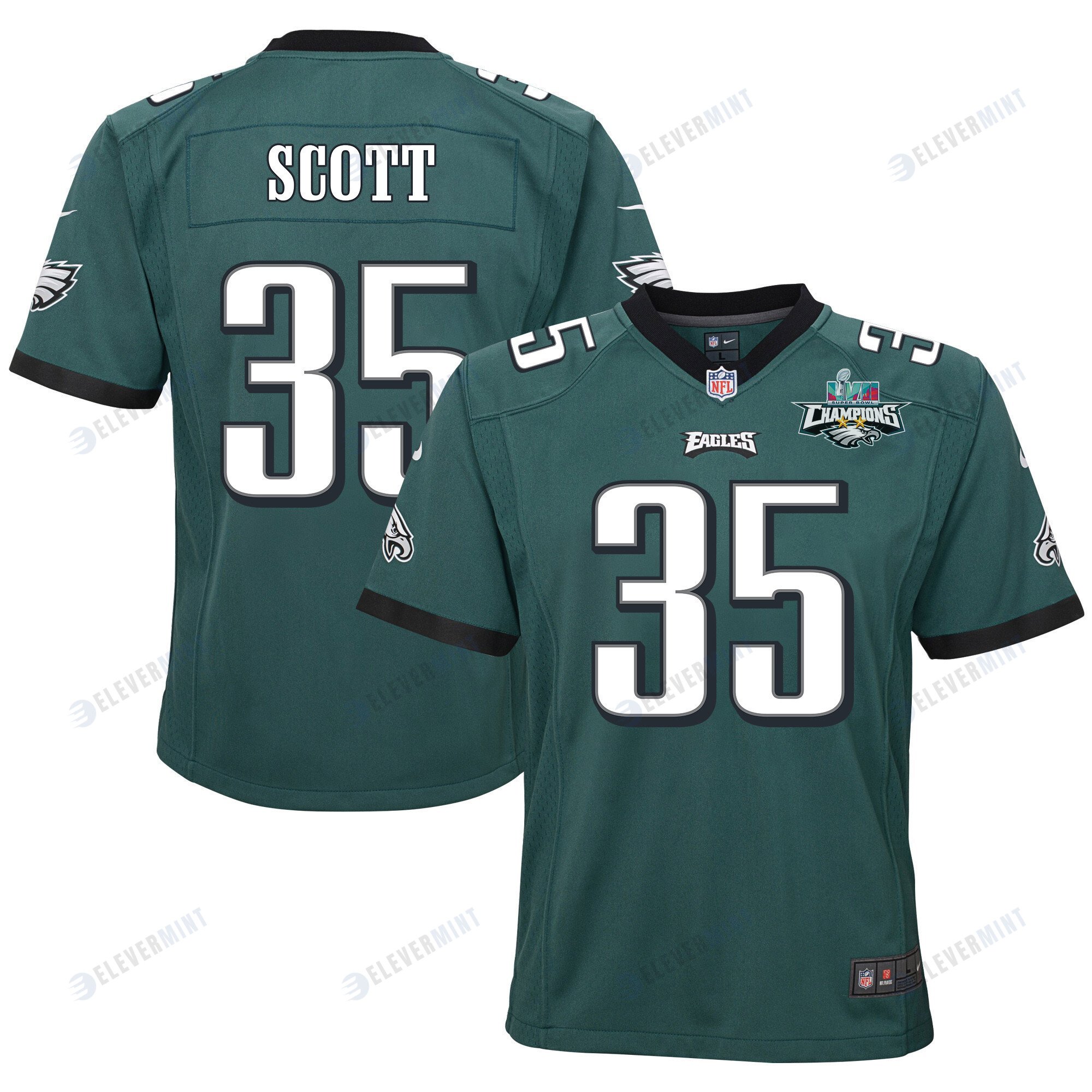 Boston Scott 35 Philadelphia Eagles Super Bowl LVII Champions 2 Stars 2 Stars Youth Game Jersey - Black