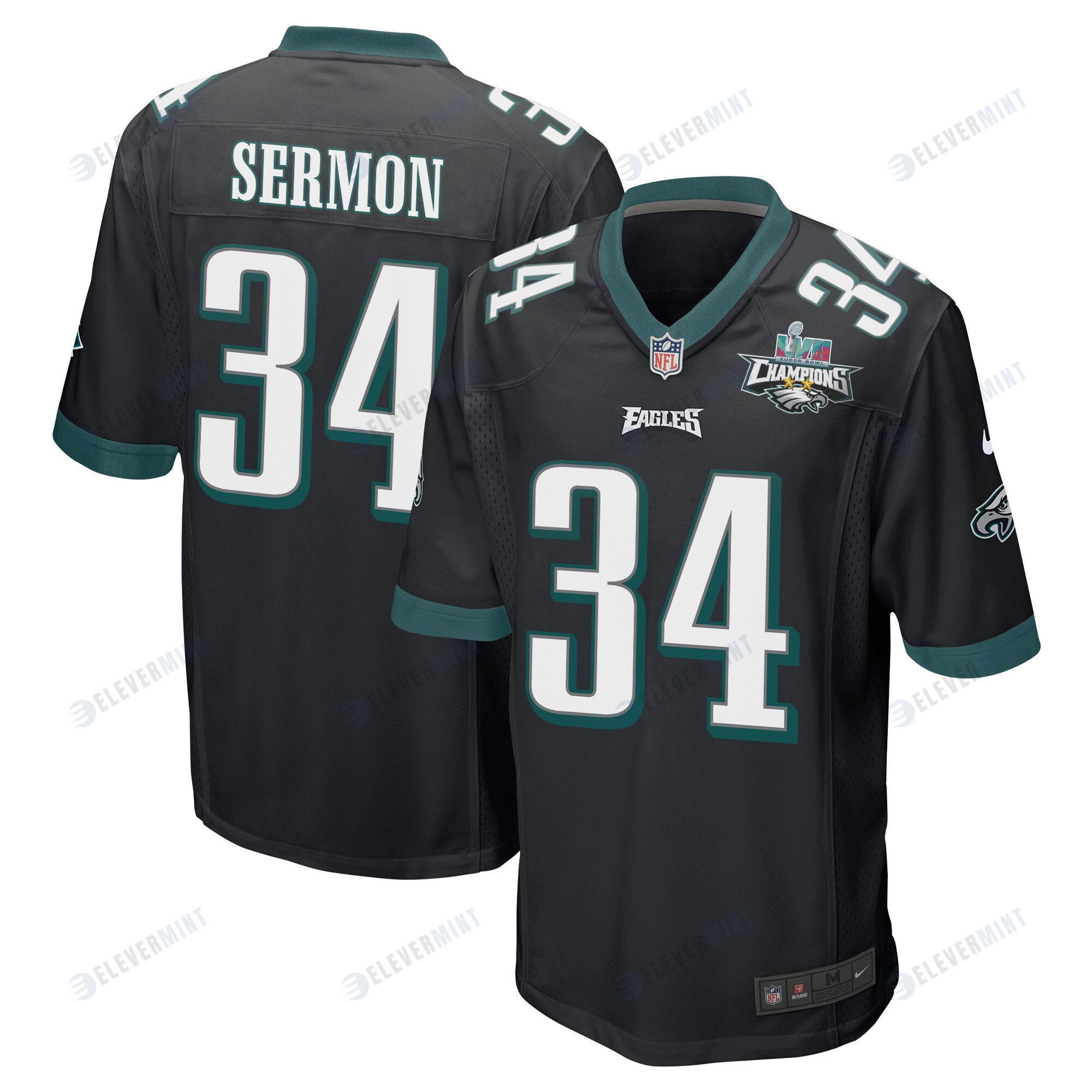 Trey Sermon 34 Philadelphia Eagles Super Bowl LVII Champions 2 Stars Men Game Jersey - Black