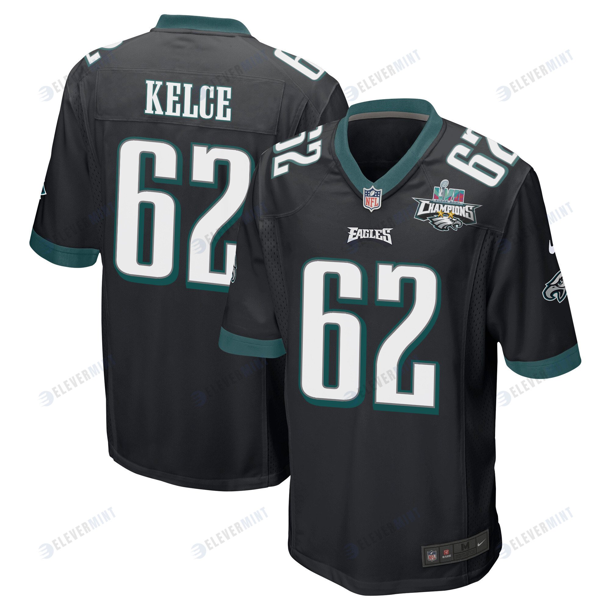 Jason Kelce 62 Philadelphia Eagles Super Bowl LVII Champions 2 Stars Men Game Jersey - Black