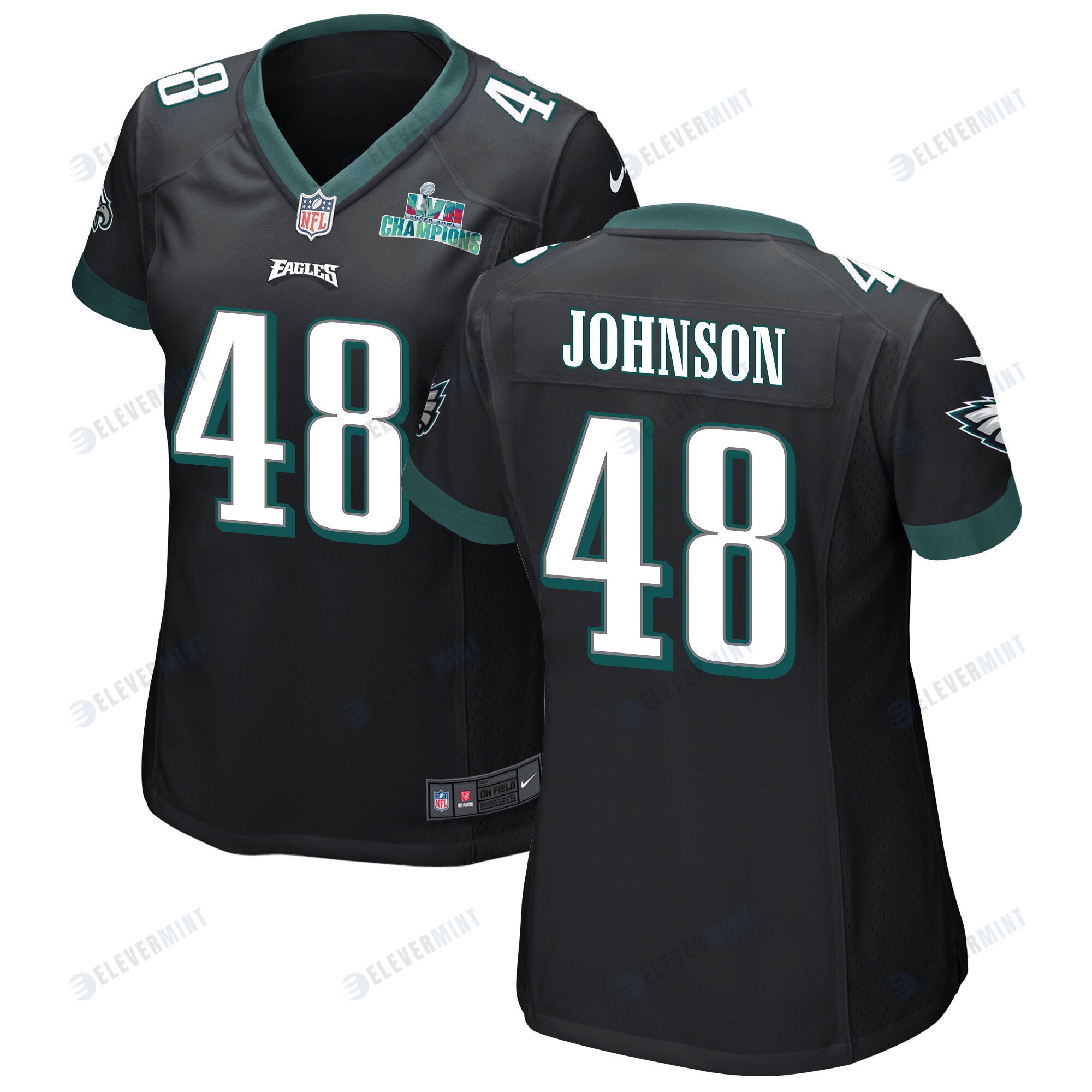 Patrick Johnson 48 Philadelphia Eagles Super Bowl LVII Champions Women Game Jersey - Black