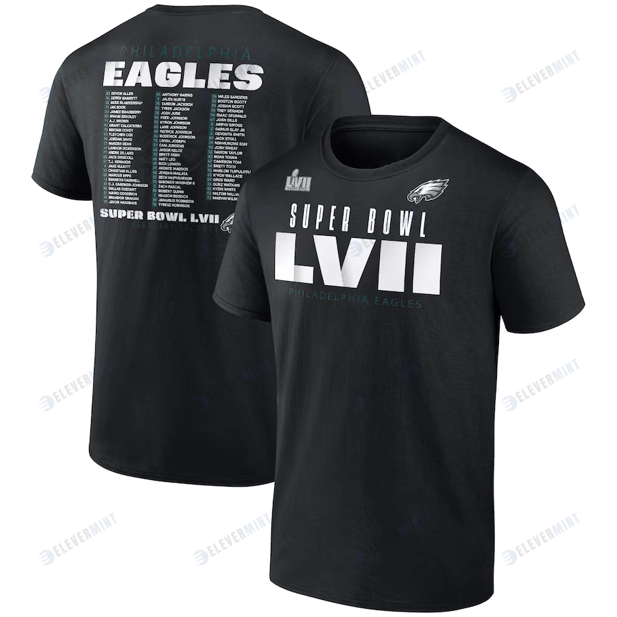 Philadelphia Eagles Super Bowl LVII Varsity Roster T-Shirt - Black