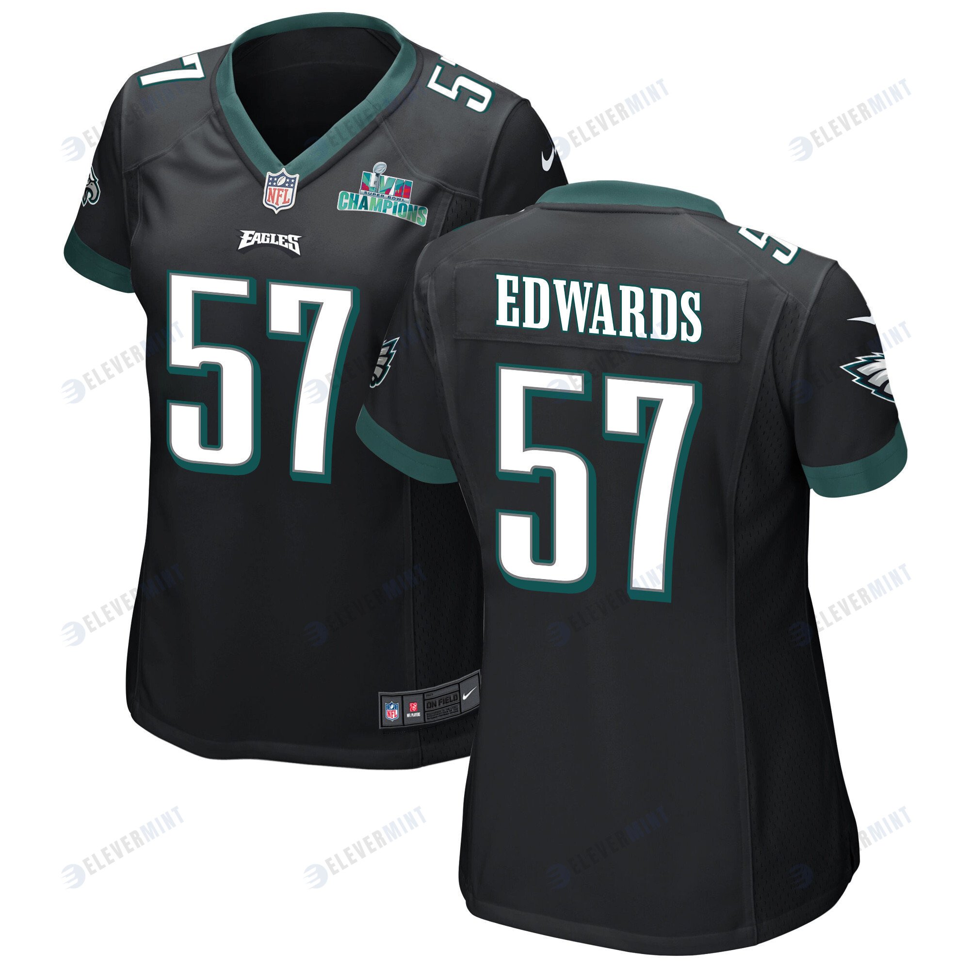T.J. Edwards 57 Philadelphia Eagles Super Bowl LVII Champions Women Game Jersey - Black