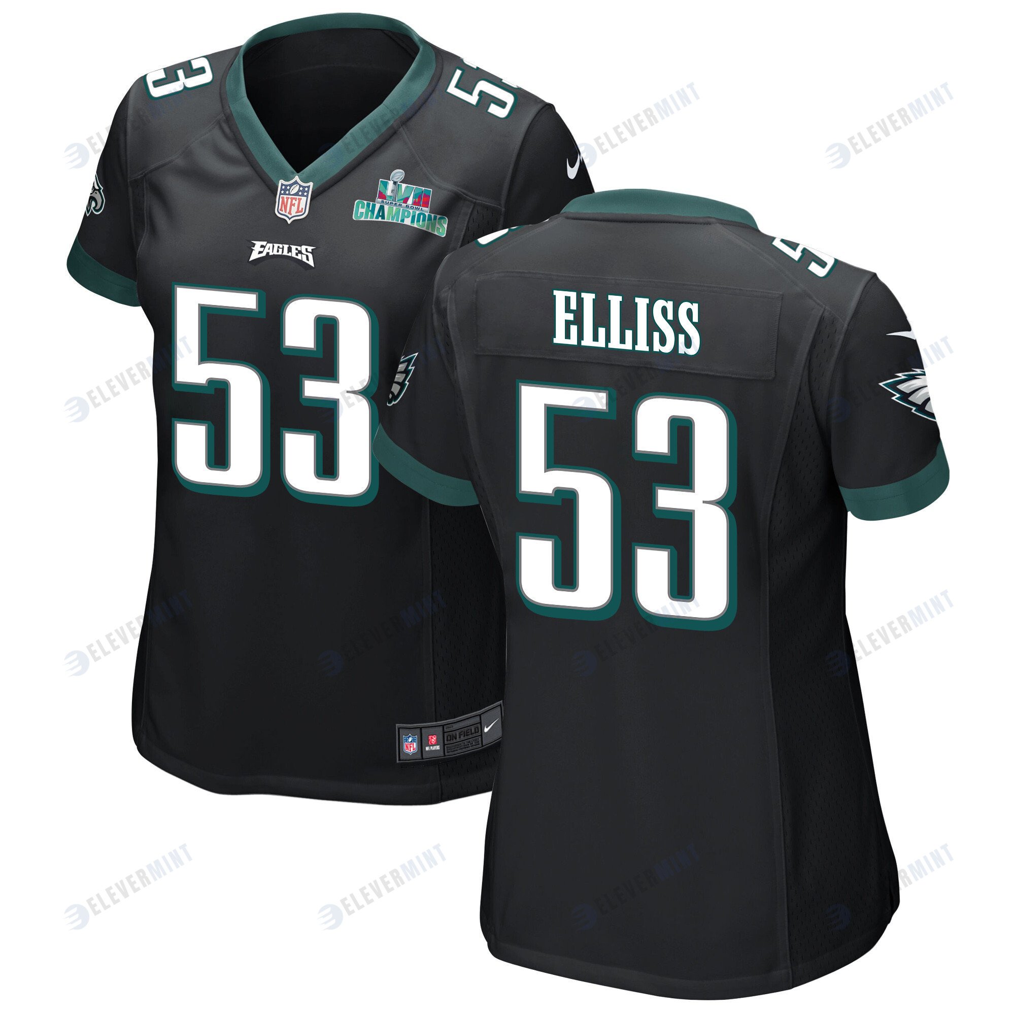 Christian Elliss 53 Philadelphia Eagles Super Bowl LVII Champions Women Game Jersey - Black