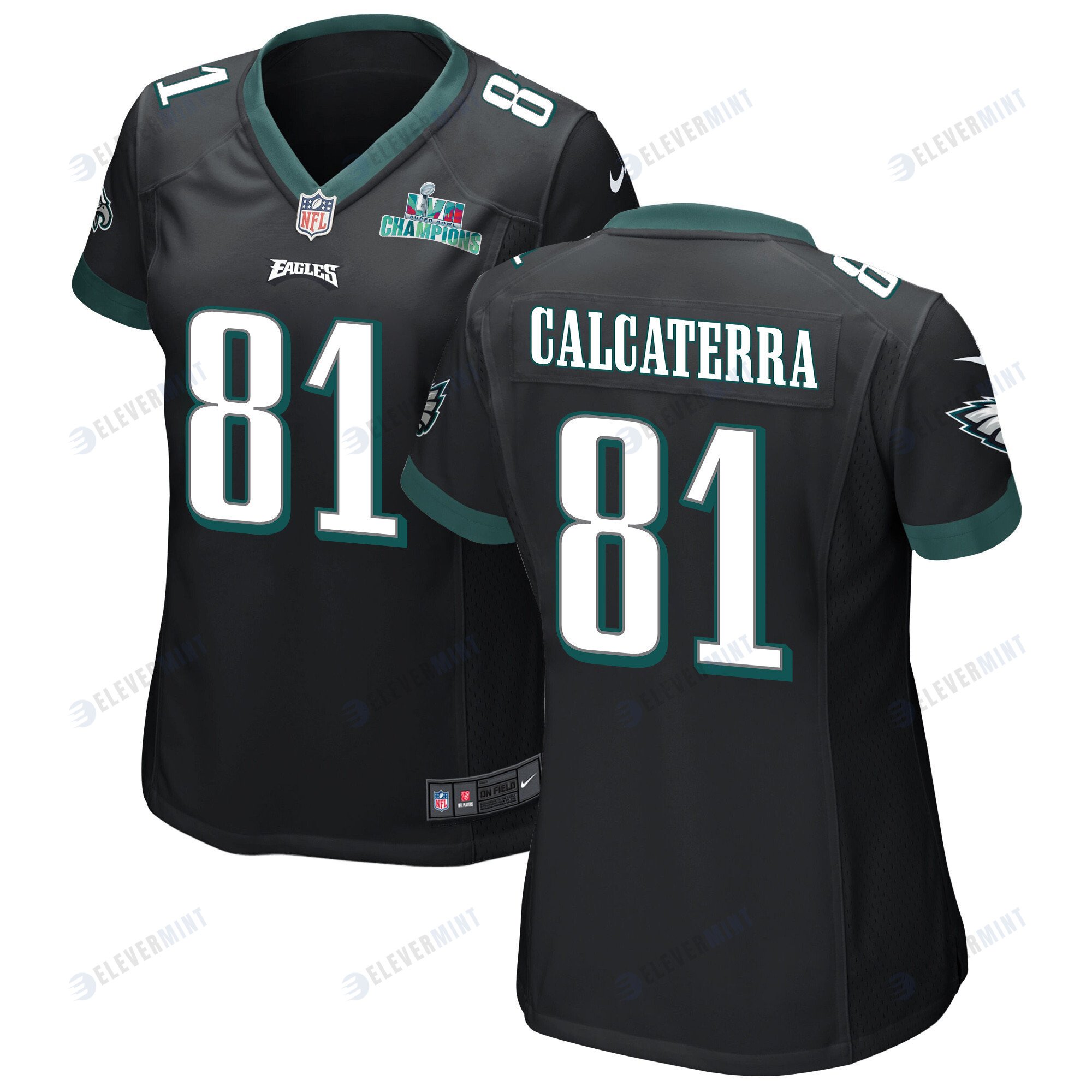 Grant Calcaterra 81 Philadelphia Eagles Super Bowl LVII Champions Women Game Jersey - Black